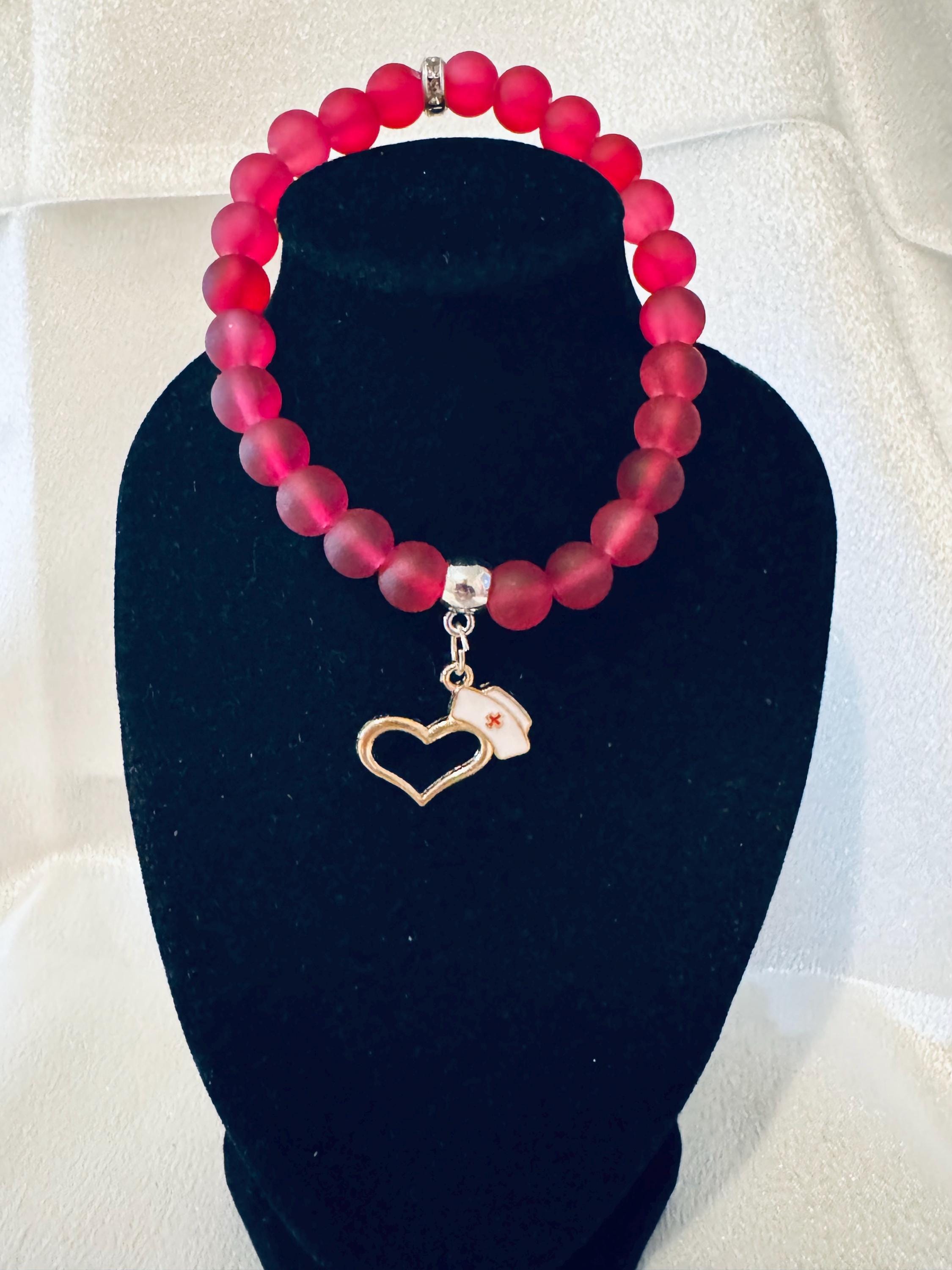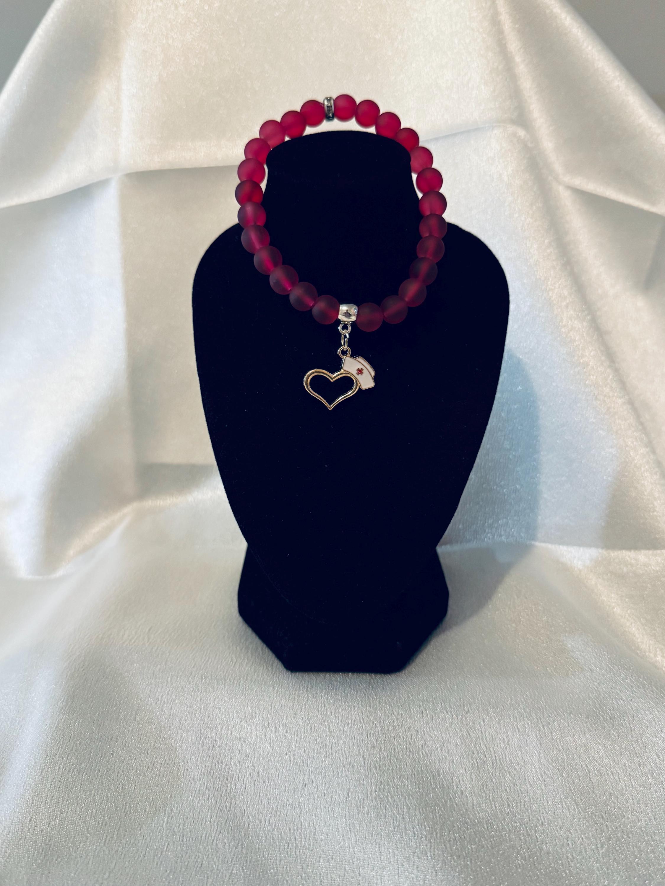 Nurse Hat with Heart Charm Stretch Bracelet