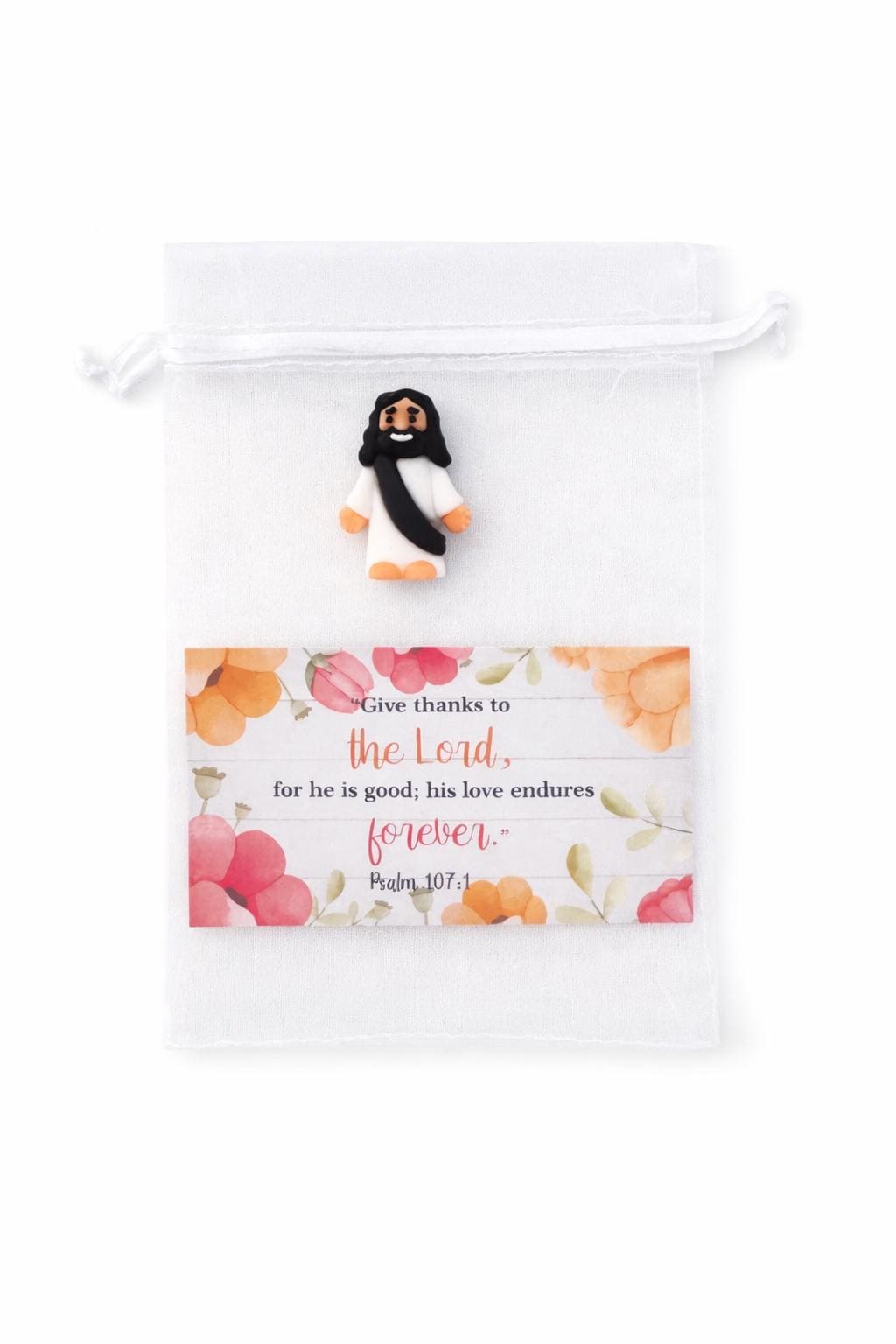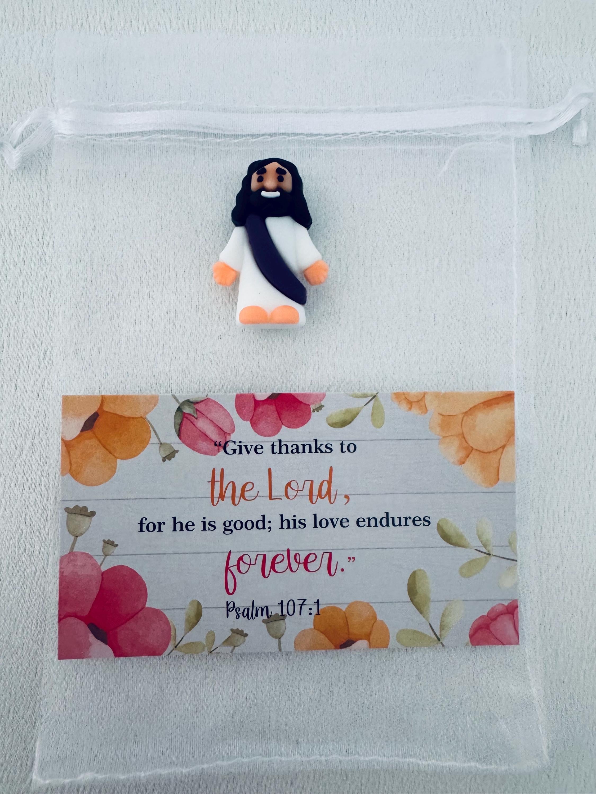 A sweet little reminder to stay thankful 🌸🤍This adorable Jesus charm paired with Psalm 107:1 shares a beautiful message of gratitude and everlasting love — simple, cheerful, and full of faith.