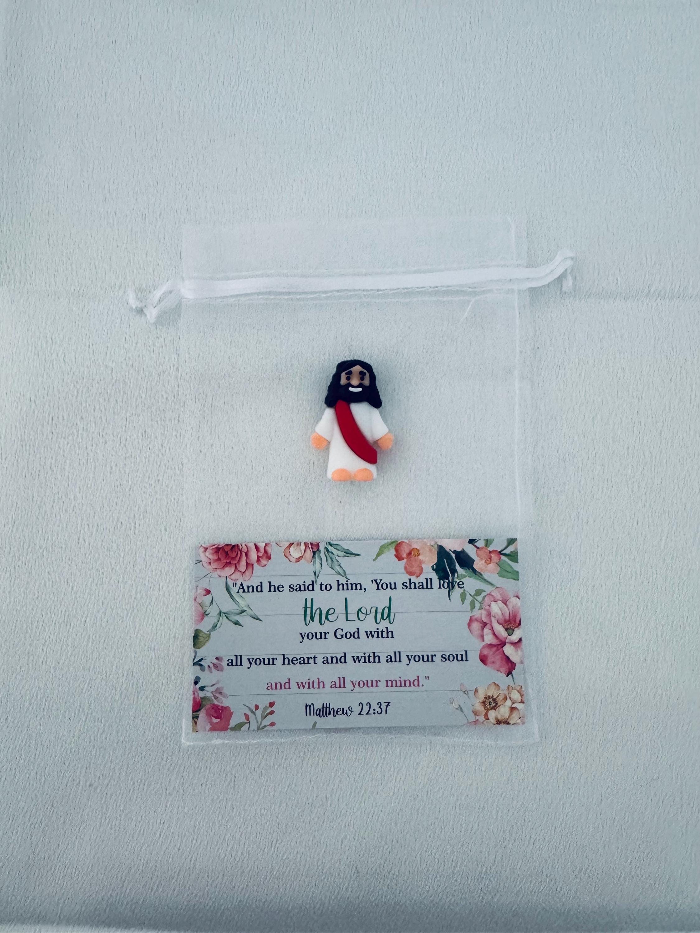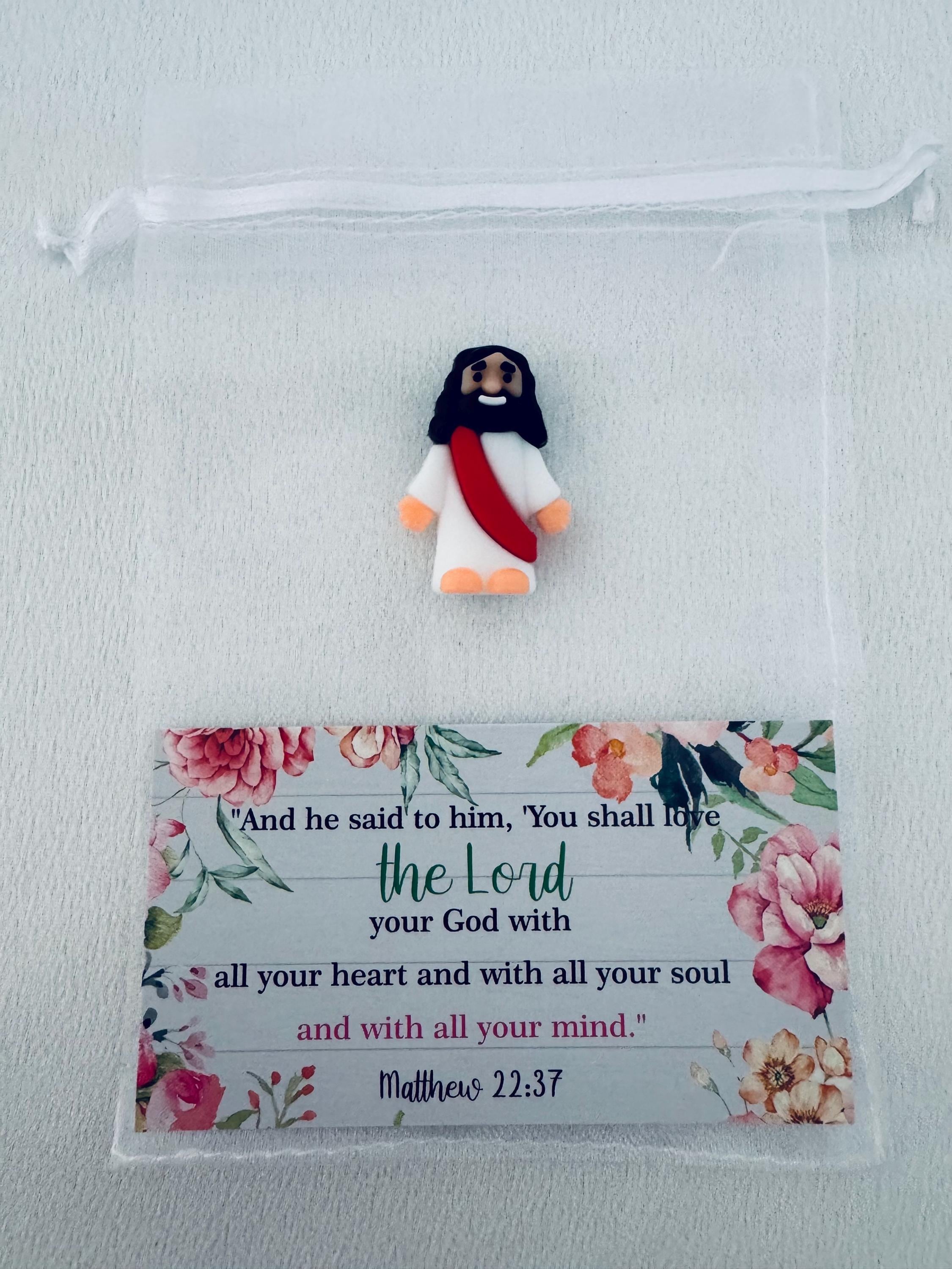 A sweet reminder to love wholeheartedly ๐๐ธThis adorable Jesus charm paired with Matthew 22:37 shares a beautiful message of loving the Lord with all your heart, soul, and mind โ soft, floral, and full of faith.