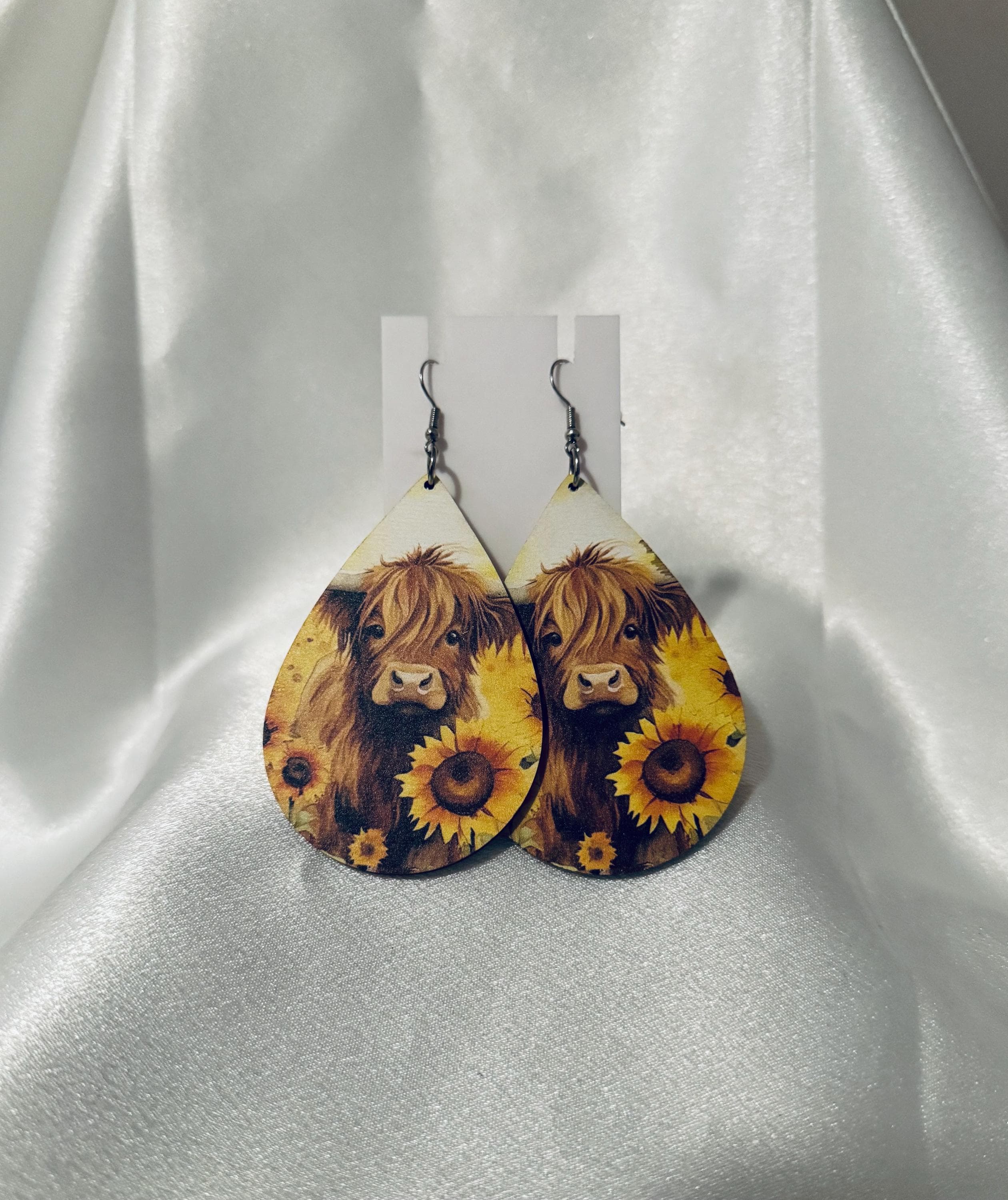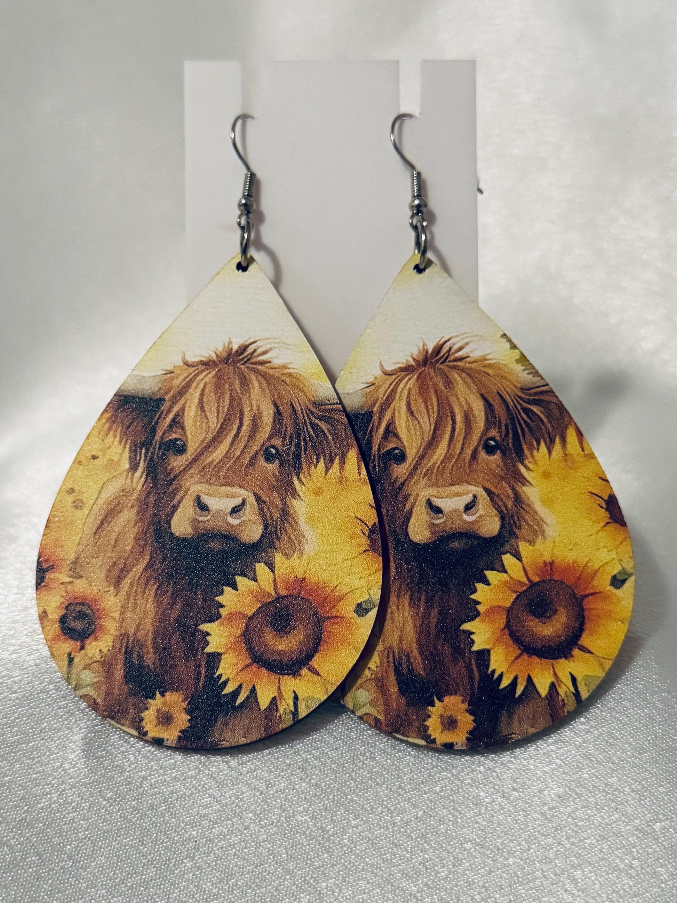 Adorable 2.75-inch wooden earrings featuring a sweet Highland cow and bright sunflowers 🌻🐮 Lightweight with hypoallergenic hooks, they’re perfect for sensitive ears and add the cutest rustic touch to any outfit! 💛