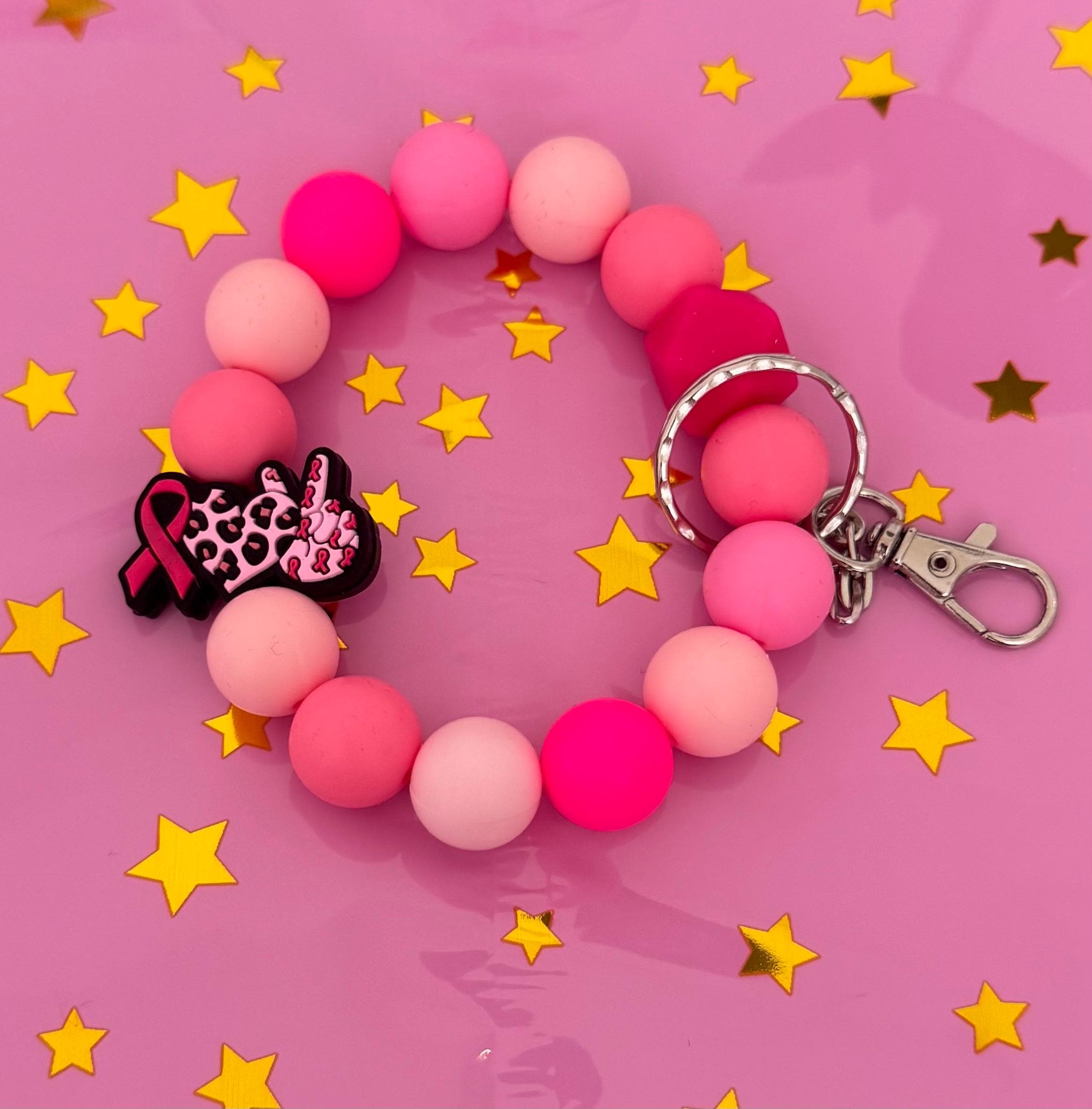Support, strength, and style all in one beautiful bundle! This meaningful goodie bag includes a charm bracelet, two pairs of earrings, a silicone beaded bracelet, a matching wristlet keychain, and a coordinating writing pen. Each piece is thoughtfully designed to spread awareness and show support for fighters, survivors, and loved ones.