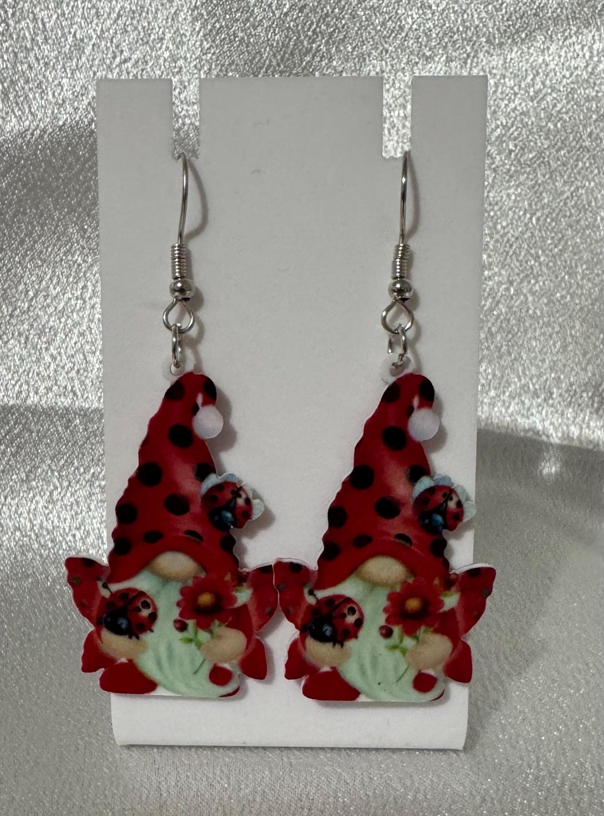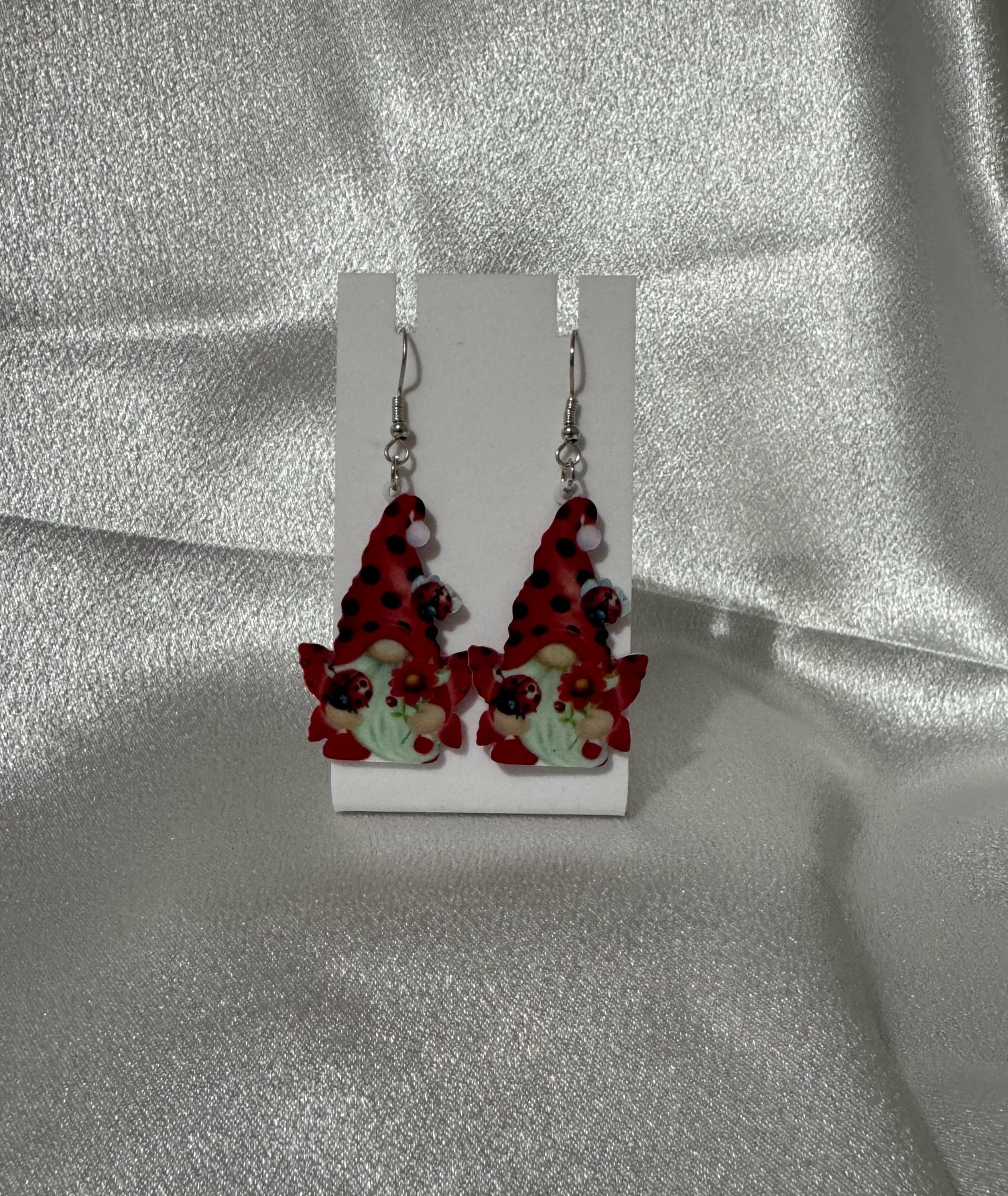 Spring Gnome Ladybug Dangle Earrings – Hypoallergenic Lightweight Jewelry